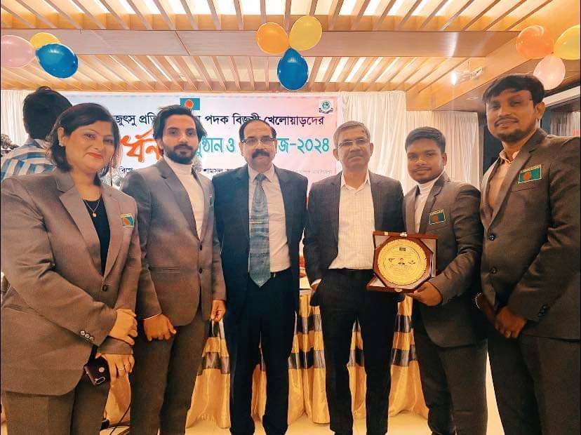 জুজুৎসু প্রতিযোগিতায়-২০২৩ বাংলাদেশের হয়ে তাম্র পদক অর্জনকারী সিলেটের মো: সিফাত আলীকে সংবর্ধনা দেওয়া হয়েছে। এছাড়া আন্তর্জাতিক অঙ্গনে পদক জয়ী আরও ২৮ জন জুজুৎসু খেলোয়ারকে সংবর্ধনা প্রদান করা হয়েছে।